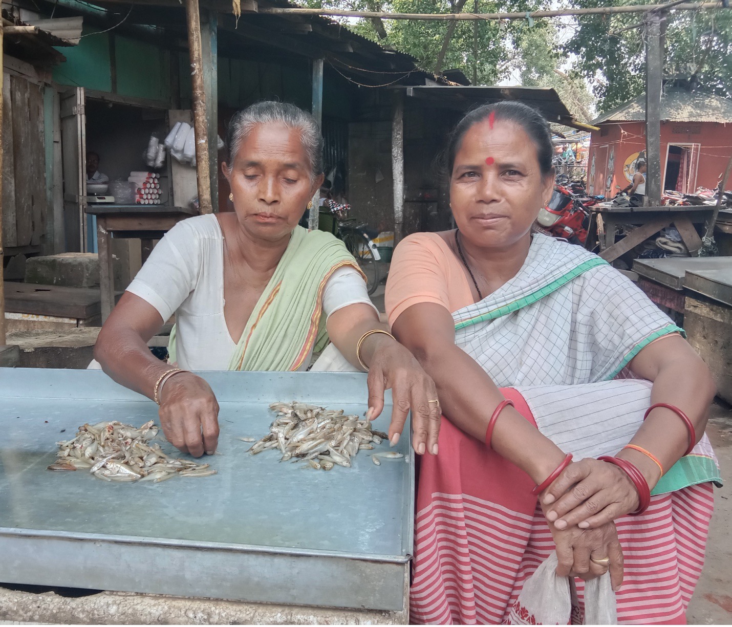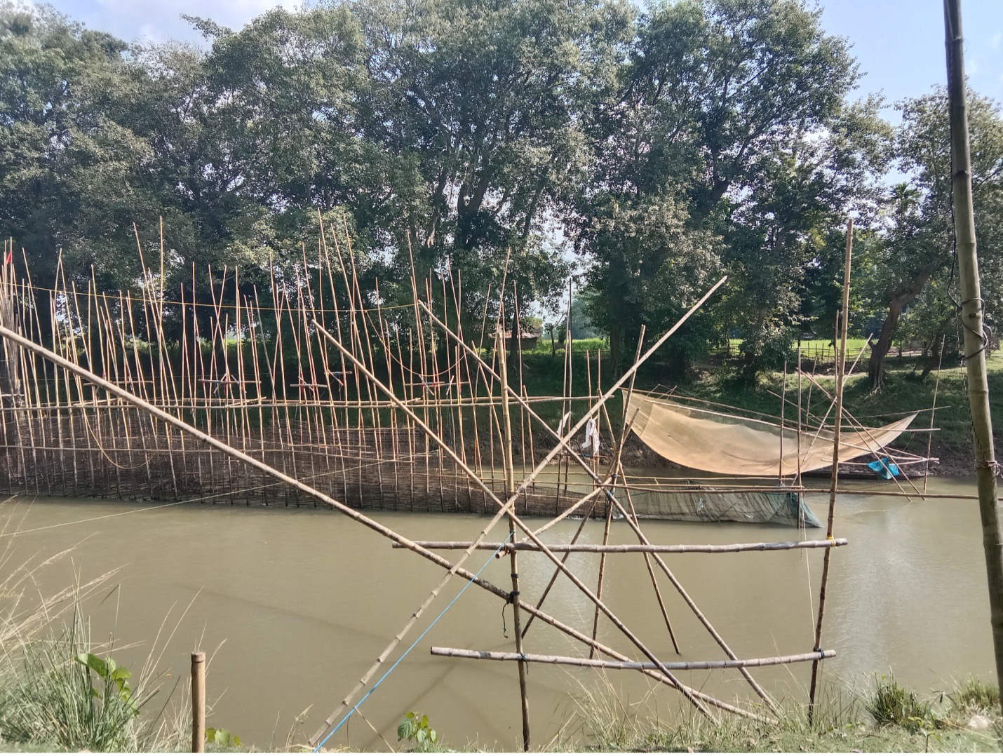 Kaibarta women in Hariamukh feel that a change in the river has discouraged them from fishing on it. They said that,