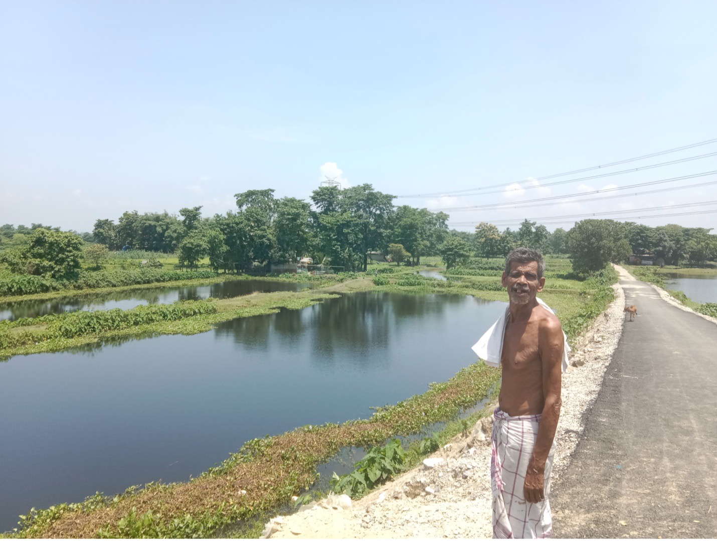 ‘Mas komise. Sob pukhuri. Kapla beel mara gol, bouta mara gol. Sob pukhuri khandi thoise. Pani oha jua nai. Etiya olop pani ase barisha karne.’ (The fish has reduced. Now everywhere there are ponds. The Kapla beel is silted, so is Bouta beel. Everywhere people are digging ponds. There is no place for movement of water. Now there is some water due to monsoons.)